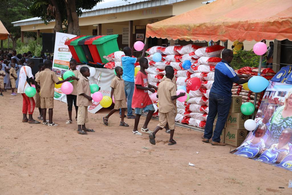 Ce sont au total 1001 kits scolaires, du mobilier pour aménager la bibliothèque de leur école, des vivres et des non vivres, qui ont été réceptionnés par la communauté éducative du département. Et ce, en présence du Maire de Samatiguila, du Sous – Préfet de Kimbirila Sud, du Maire de Tiémé, de guides religieux et chefs traditionnels, et de tous les acteurs du secteur éducation.